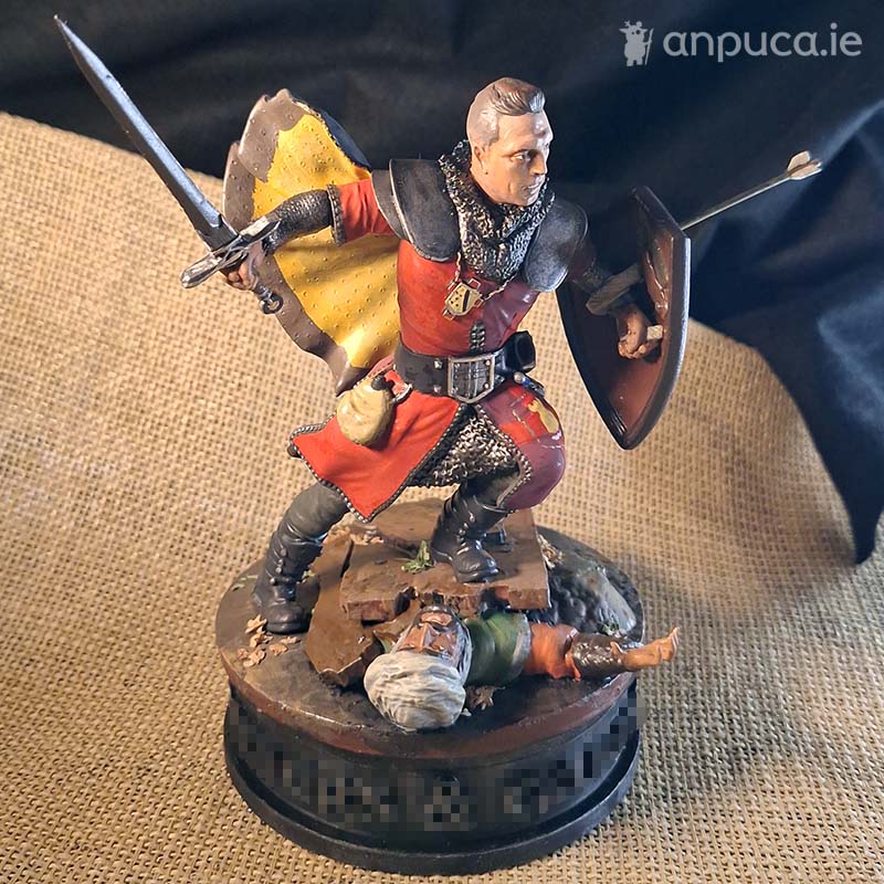 The brief challenged us to capture him as a frontline warrior, complete with precise heraldic markings and authentic festival branding. It gave us licence to unleash the full breadth of our craft: sculpting weaponry with battlefield presence, engineering a commanding stance, and weaving in just enough swords-and-sandals drama to bring the figure roaring to life.